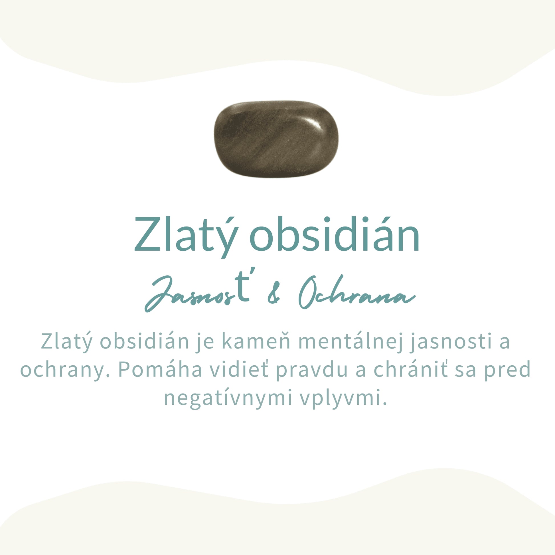 Zlatý obsidián je prírodné vulkanické sklo veľmi známe v litoterapii pre svoje vlastnosti posilňovania osobnej energie tým, že vytvára mocný ochranný štít proti negatívnym energiám.